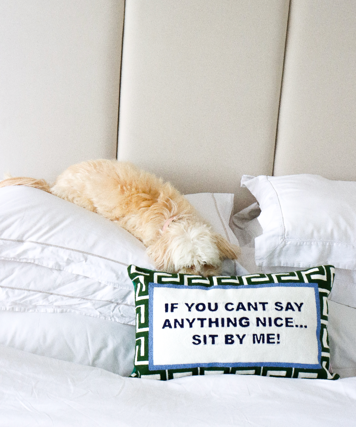 Als je niets aardigs kunt zeggen... Kom dan bij me zitten borduurkussen