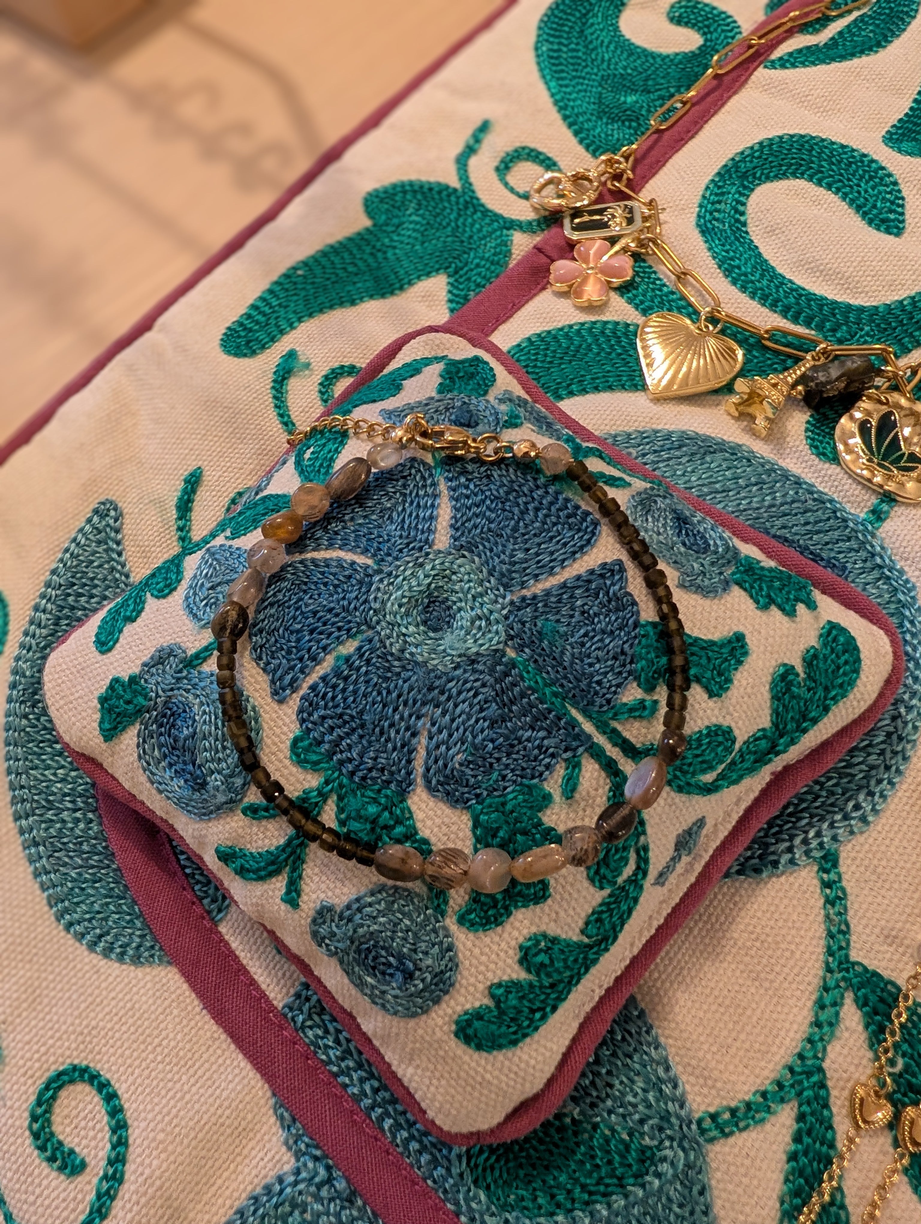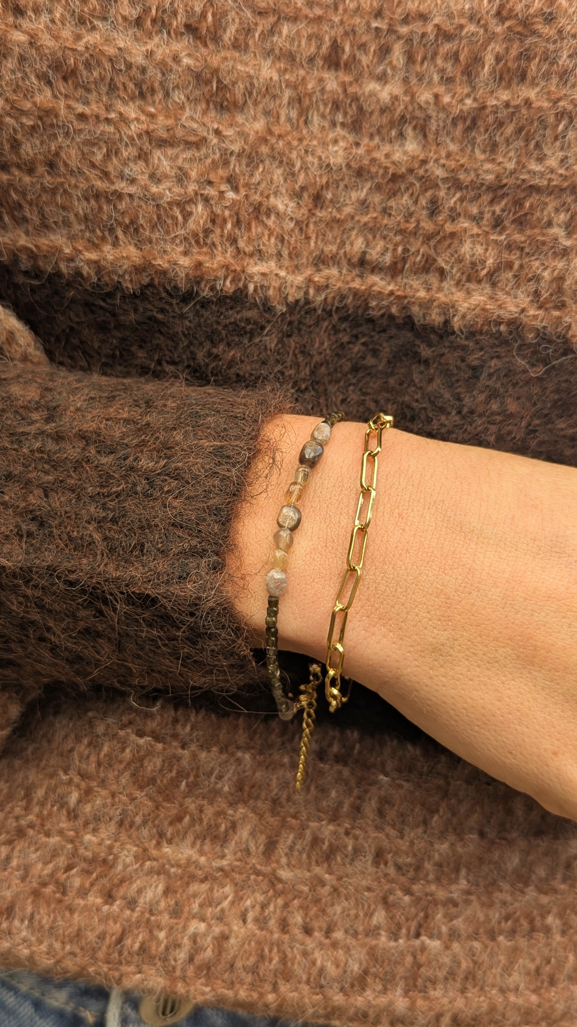 Stainless steel en koffiekleurig agaat stenen.