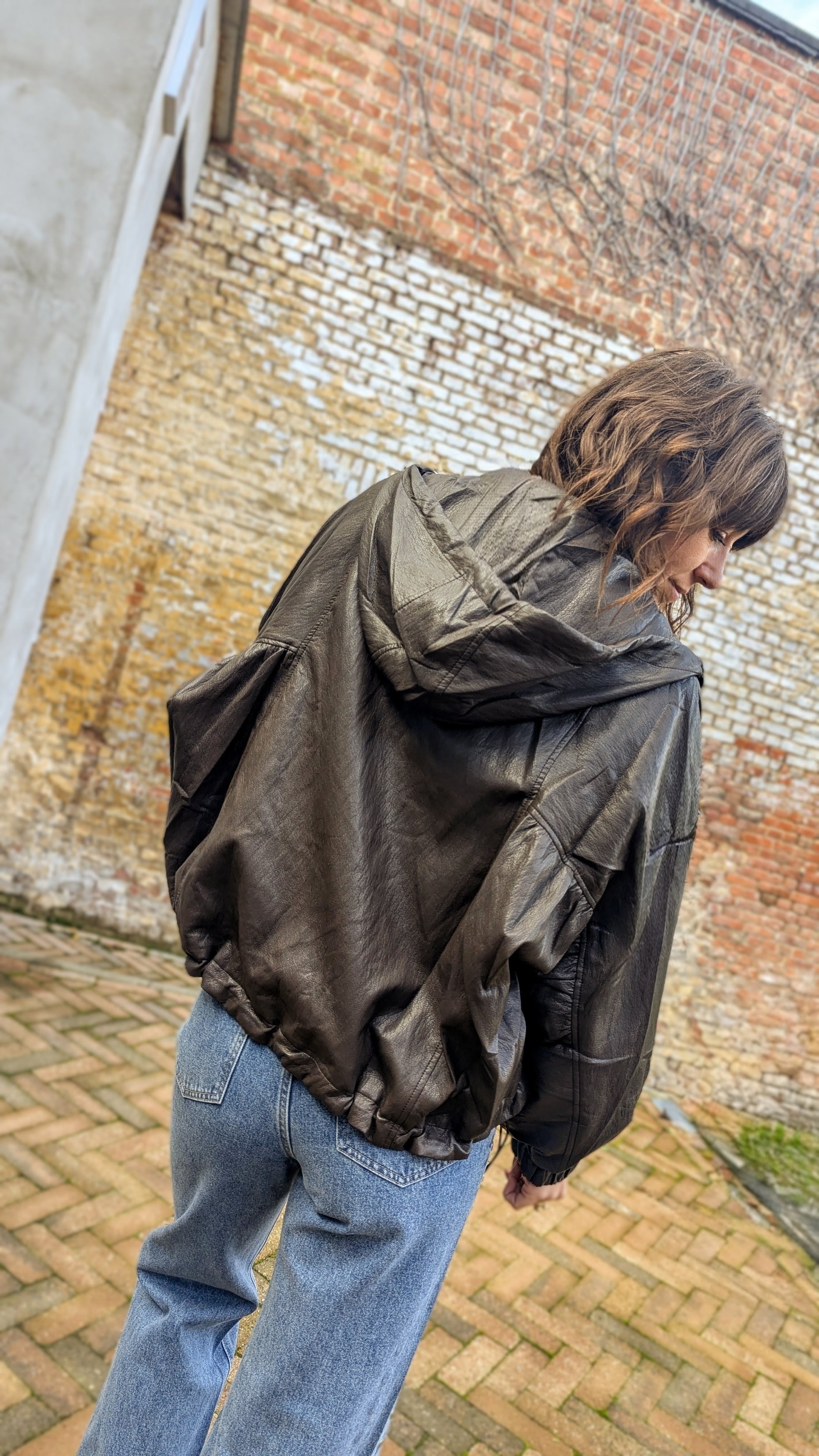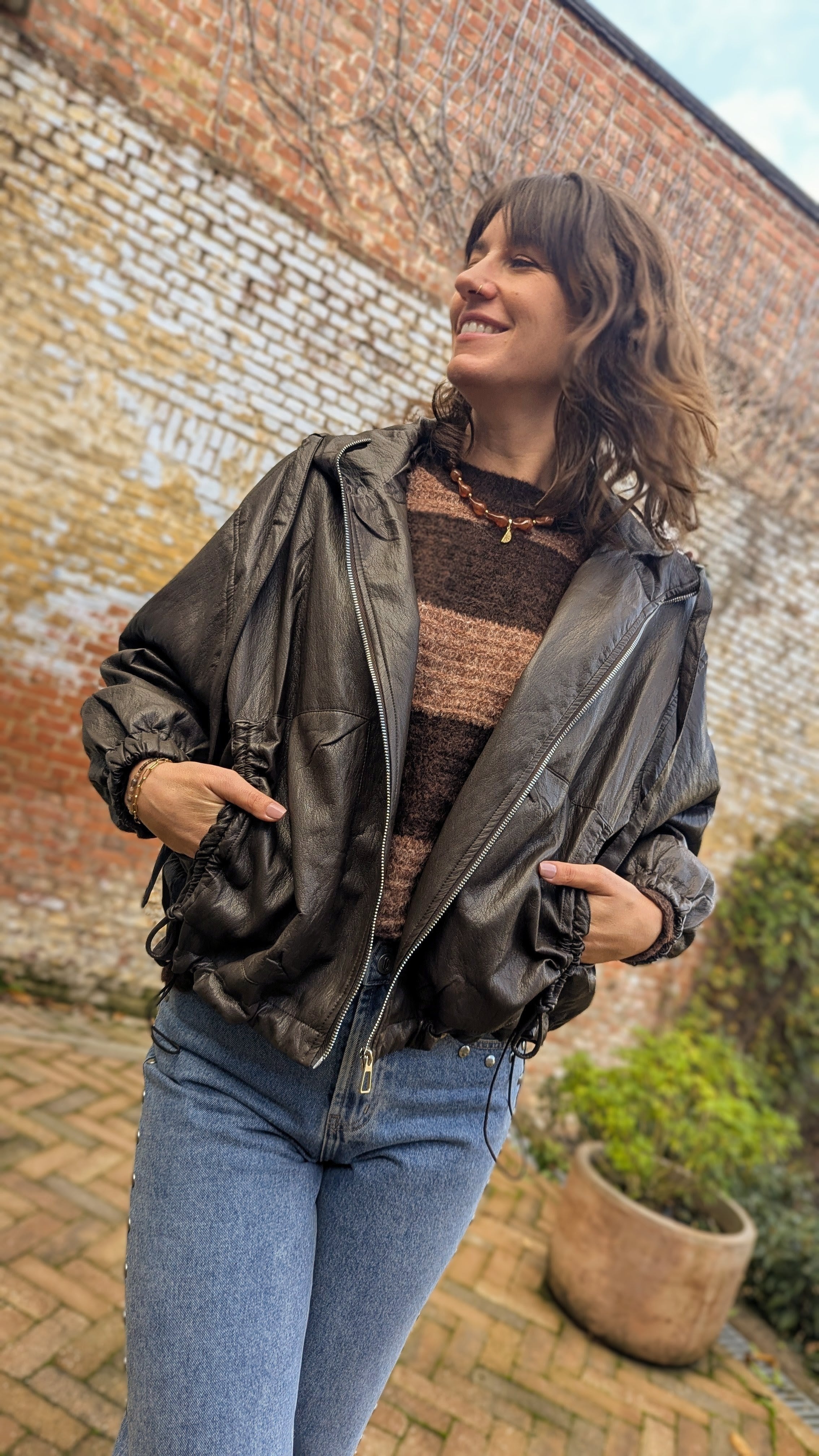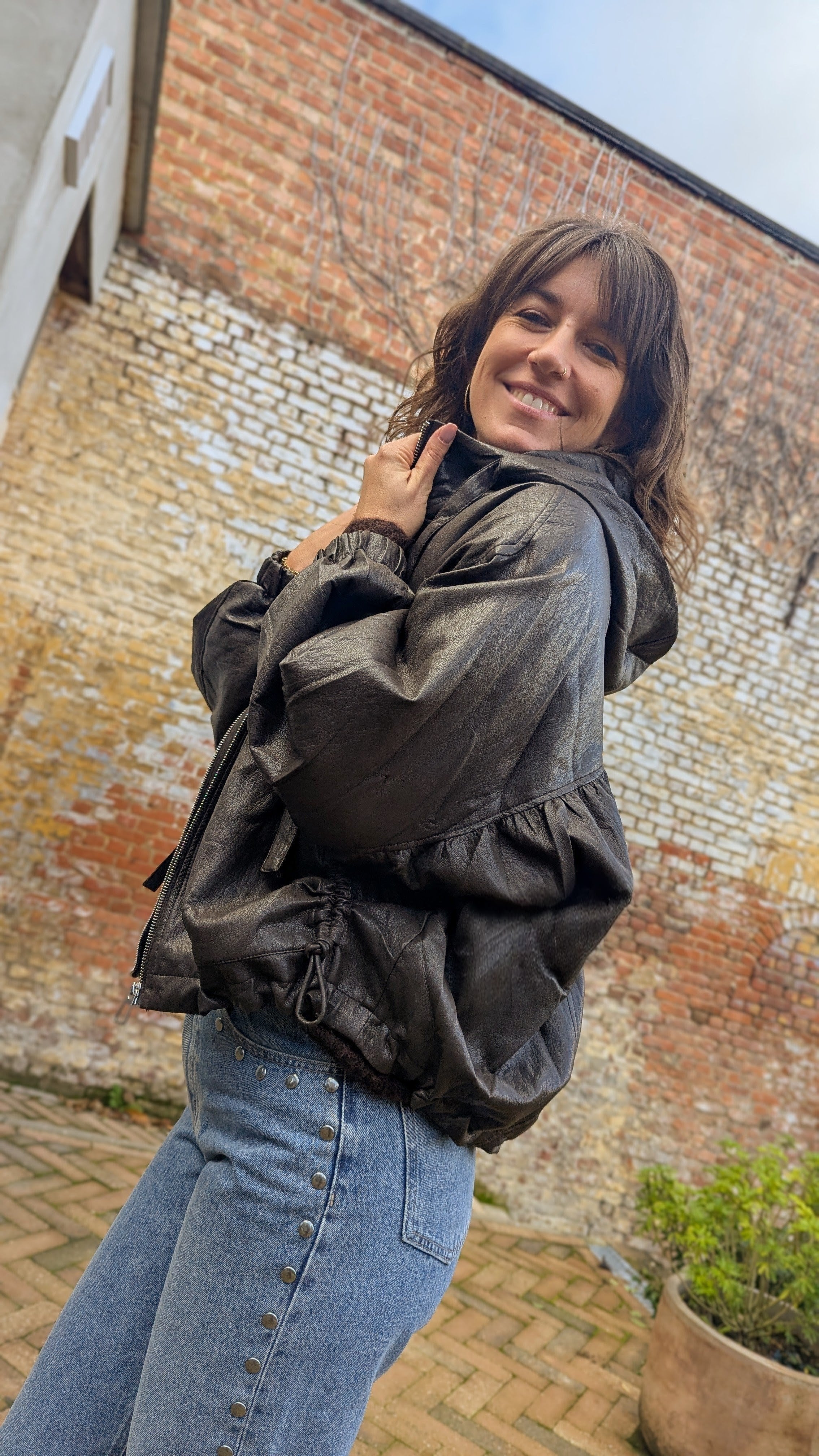 Super stoer jasje! Het soepele materiaal voelt licht aan en valt mooi losjes, perfect over een trui of knit voor dat effortless autumn lookje. Draag ‘m casual met jeans en sneakers of gooi ‘m over een jurk voor een edgy twist.