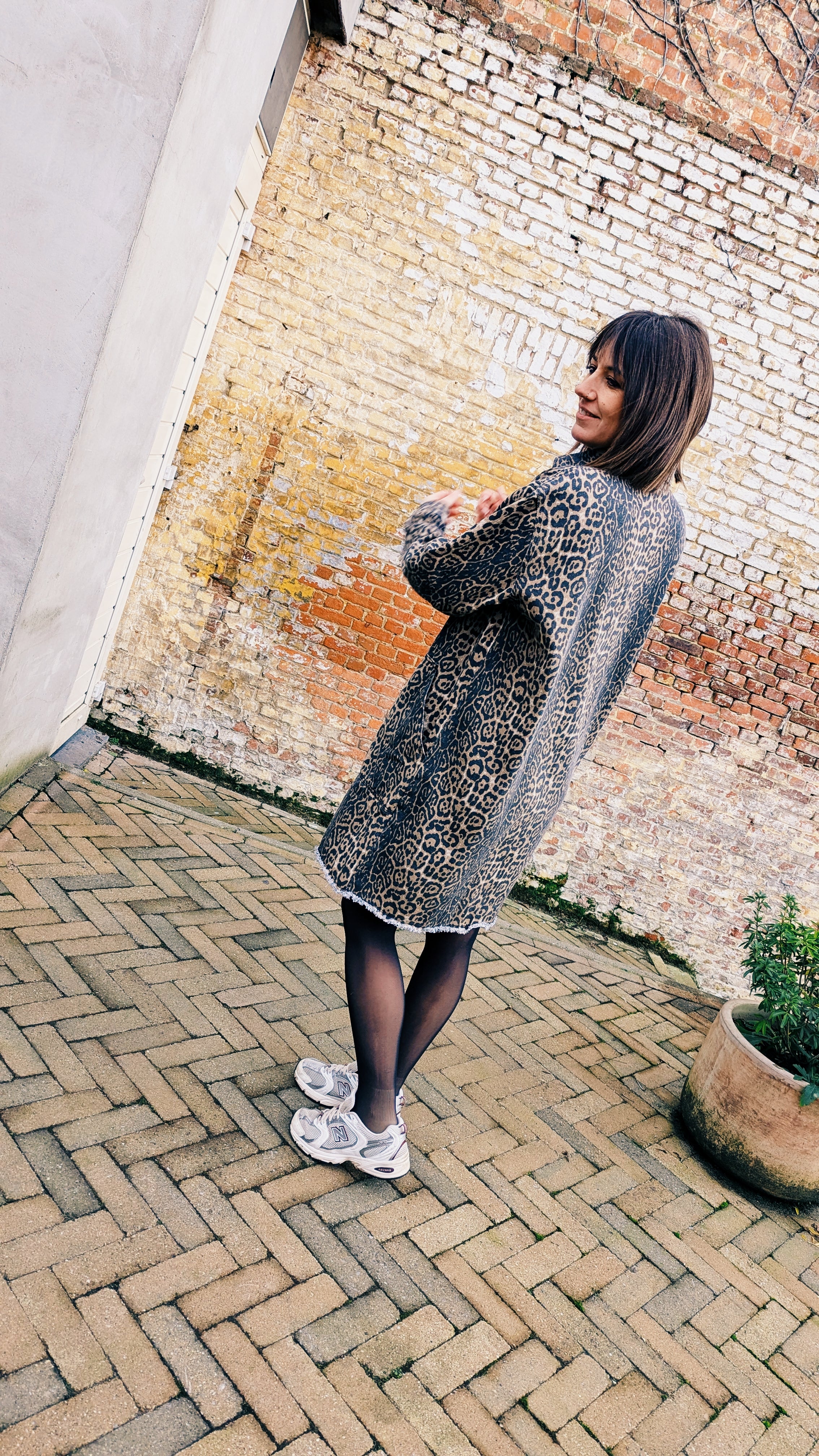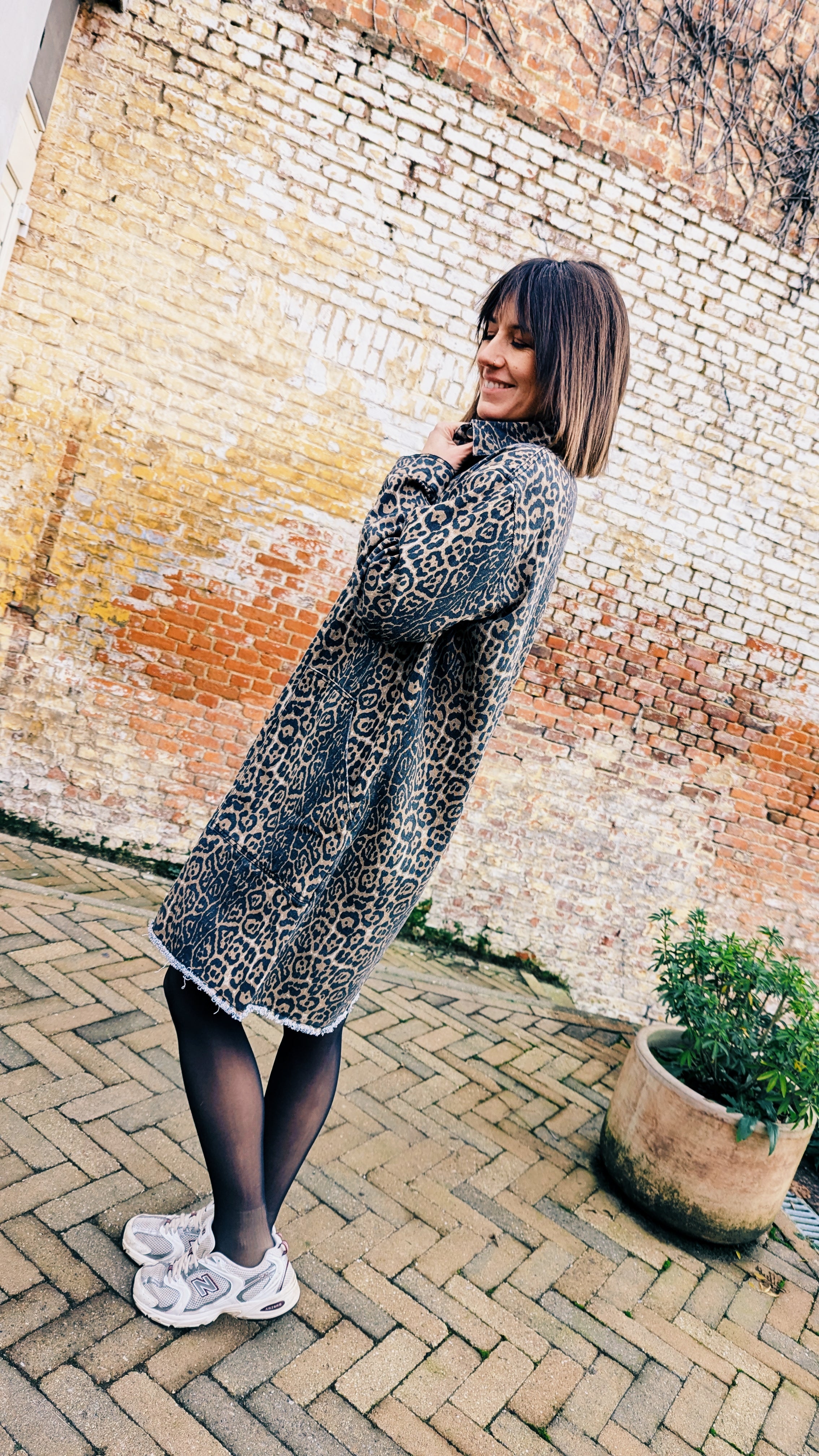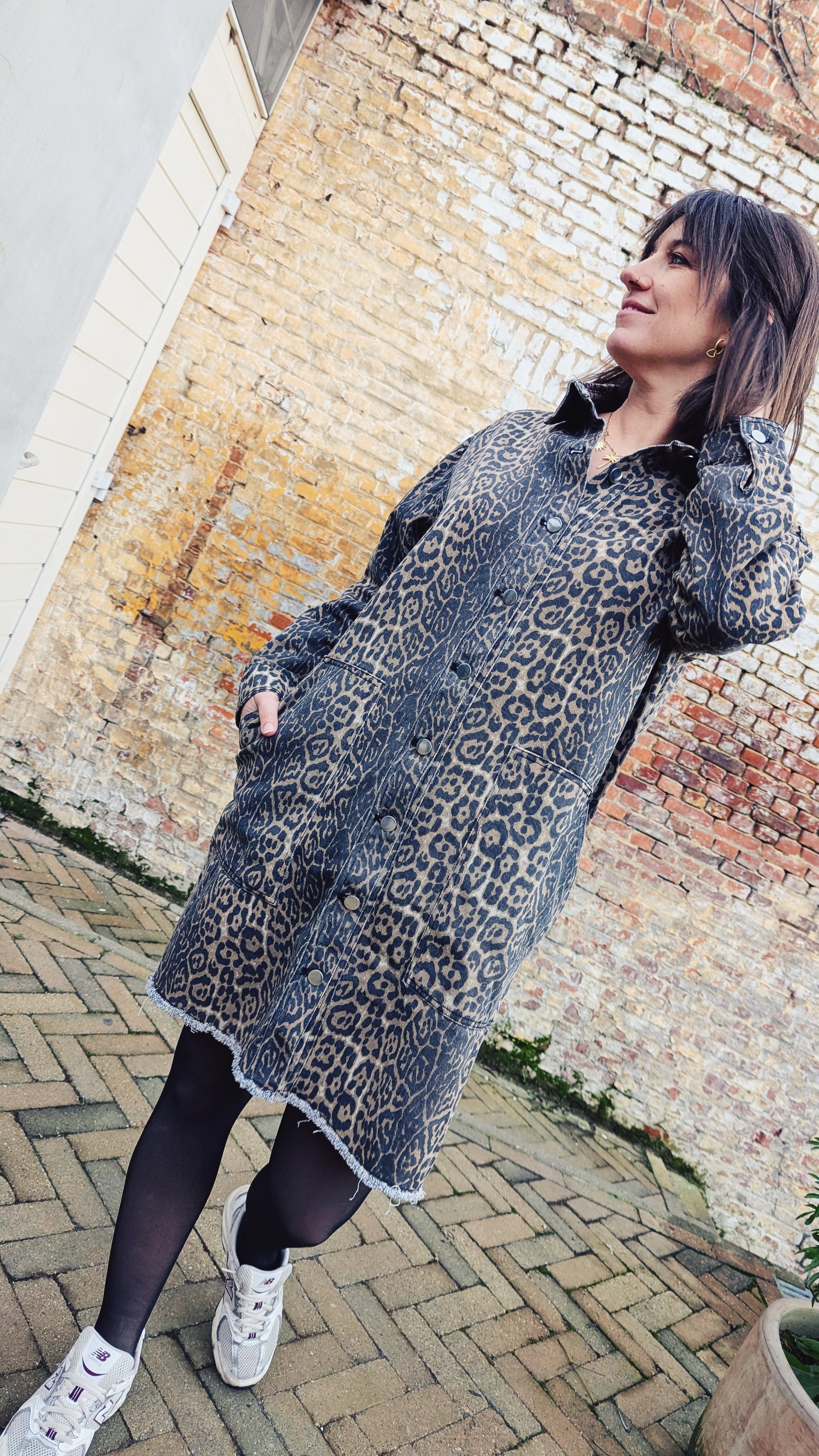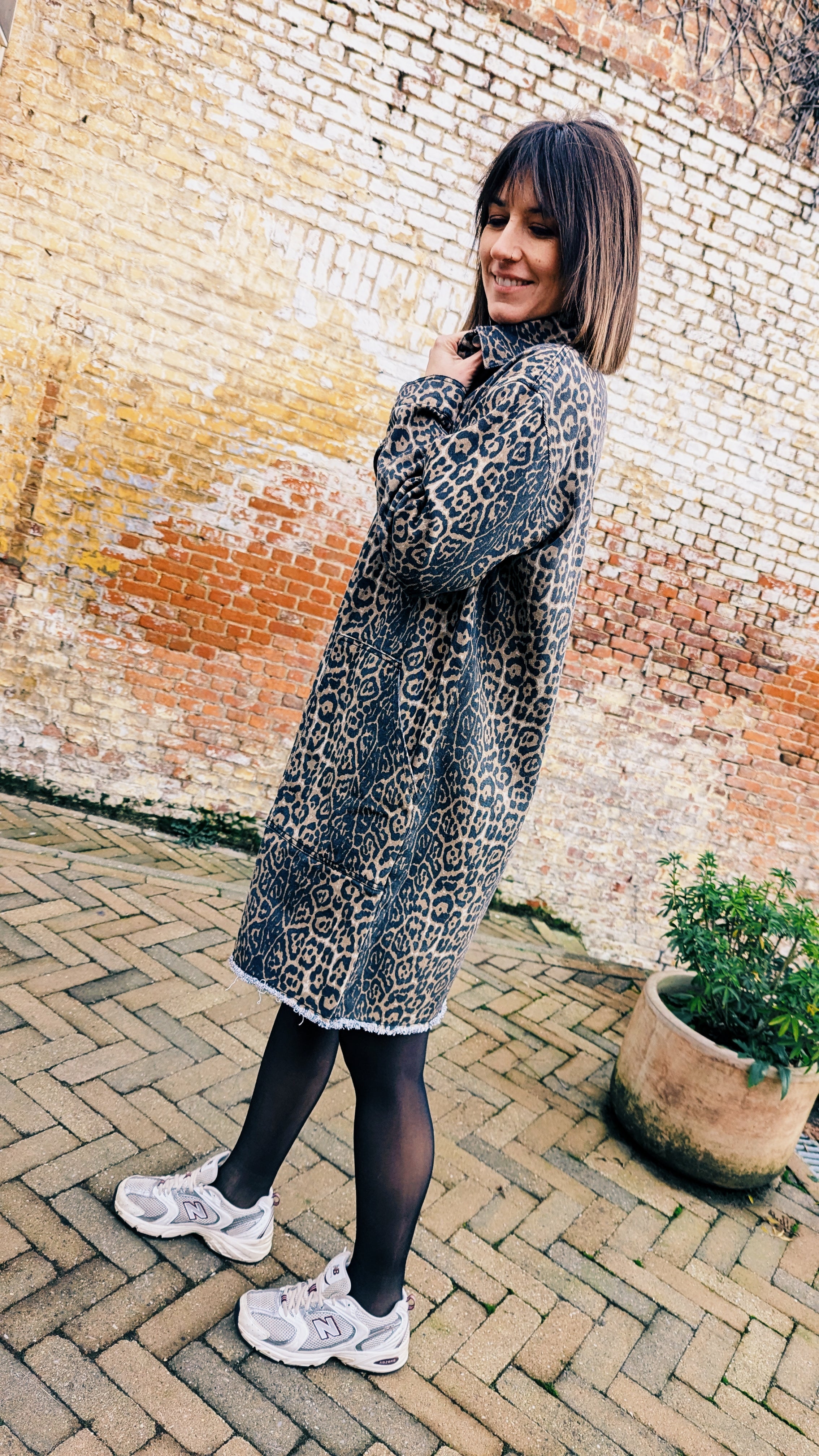Raw denim vibes met een wilde twist! Deze leopard print jeansjurk is stoer, stijlvol en een echte eyecatcher.