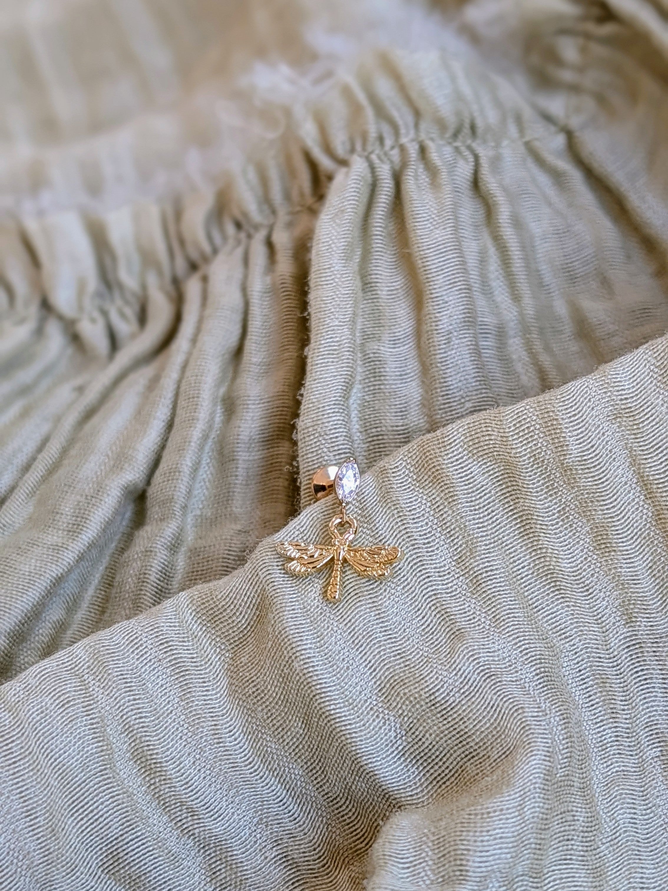 Gouden labret piercing met  dragonfly – minimal statement ✨