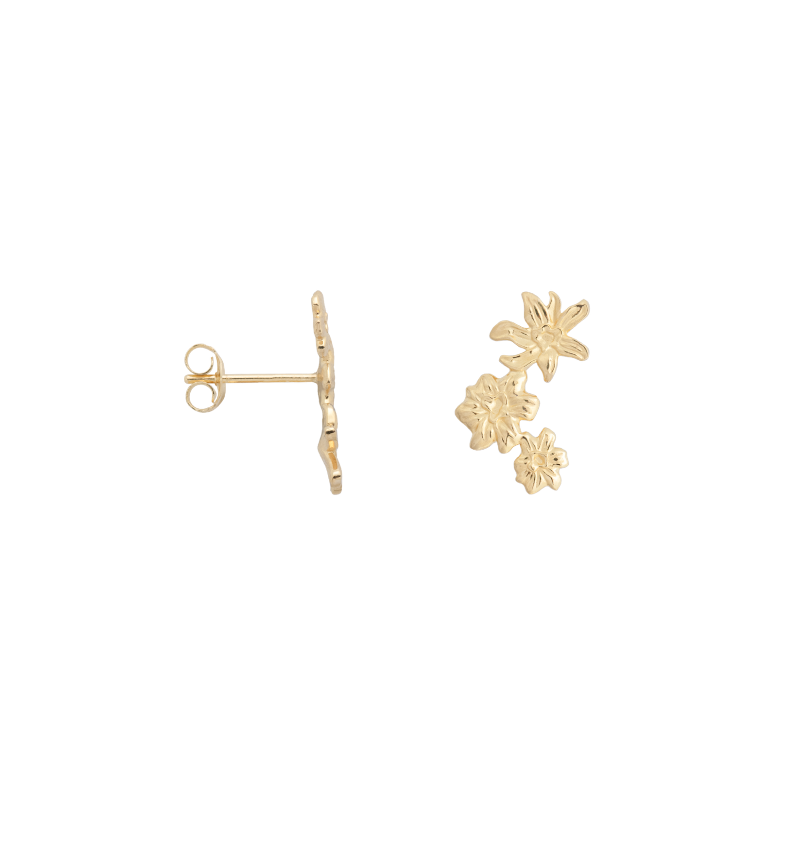 The Single Flourish Stud Earring is a lovely piece with a detailed floral design. The curved design of the stud gives the illusion of wearing multiple earrings.