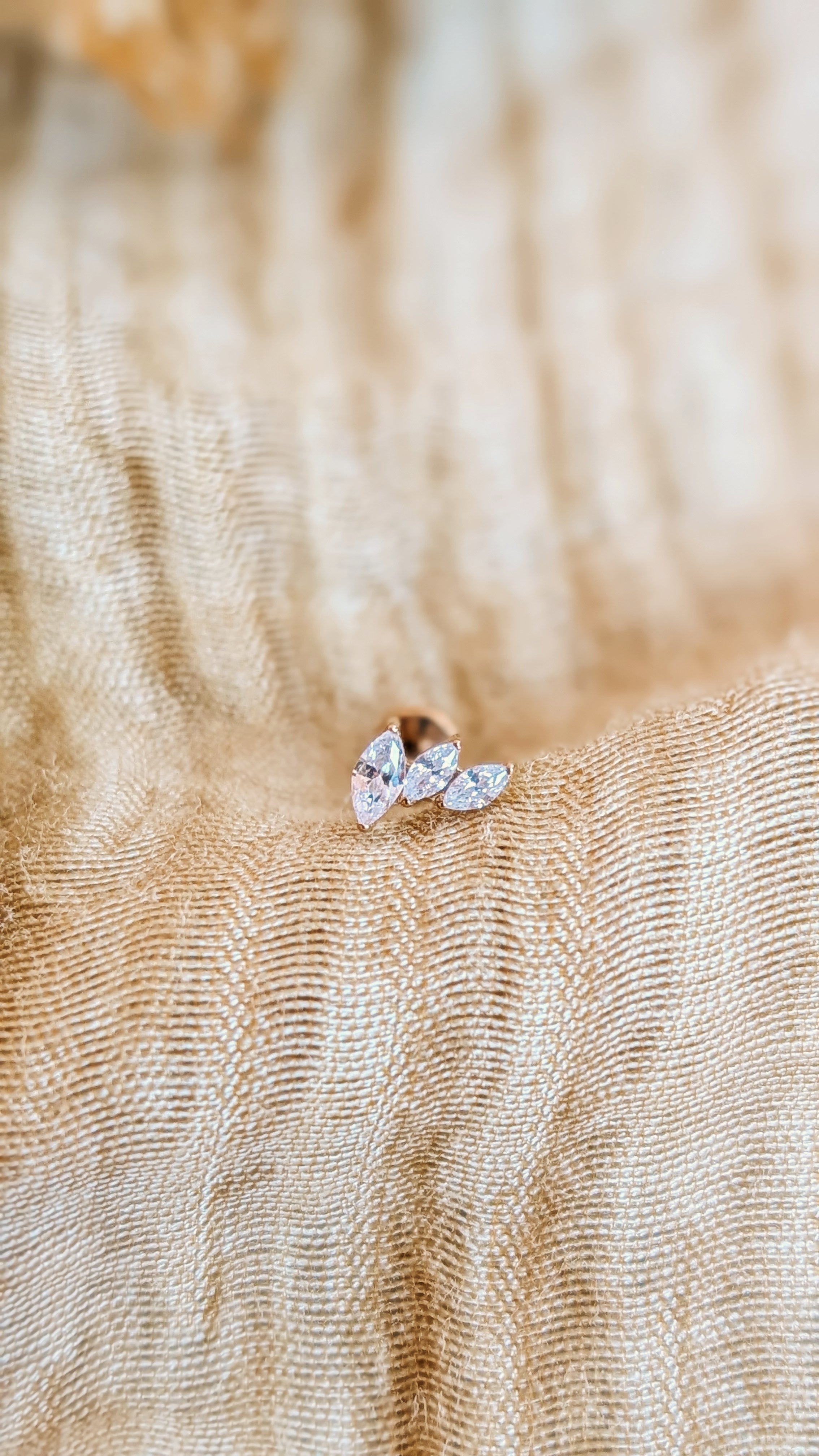 Gouden labret piercing met  marquise blaadjes – minimal statement ✨