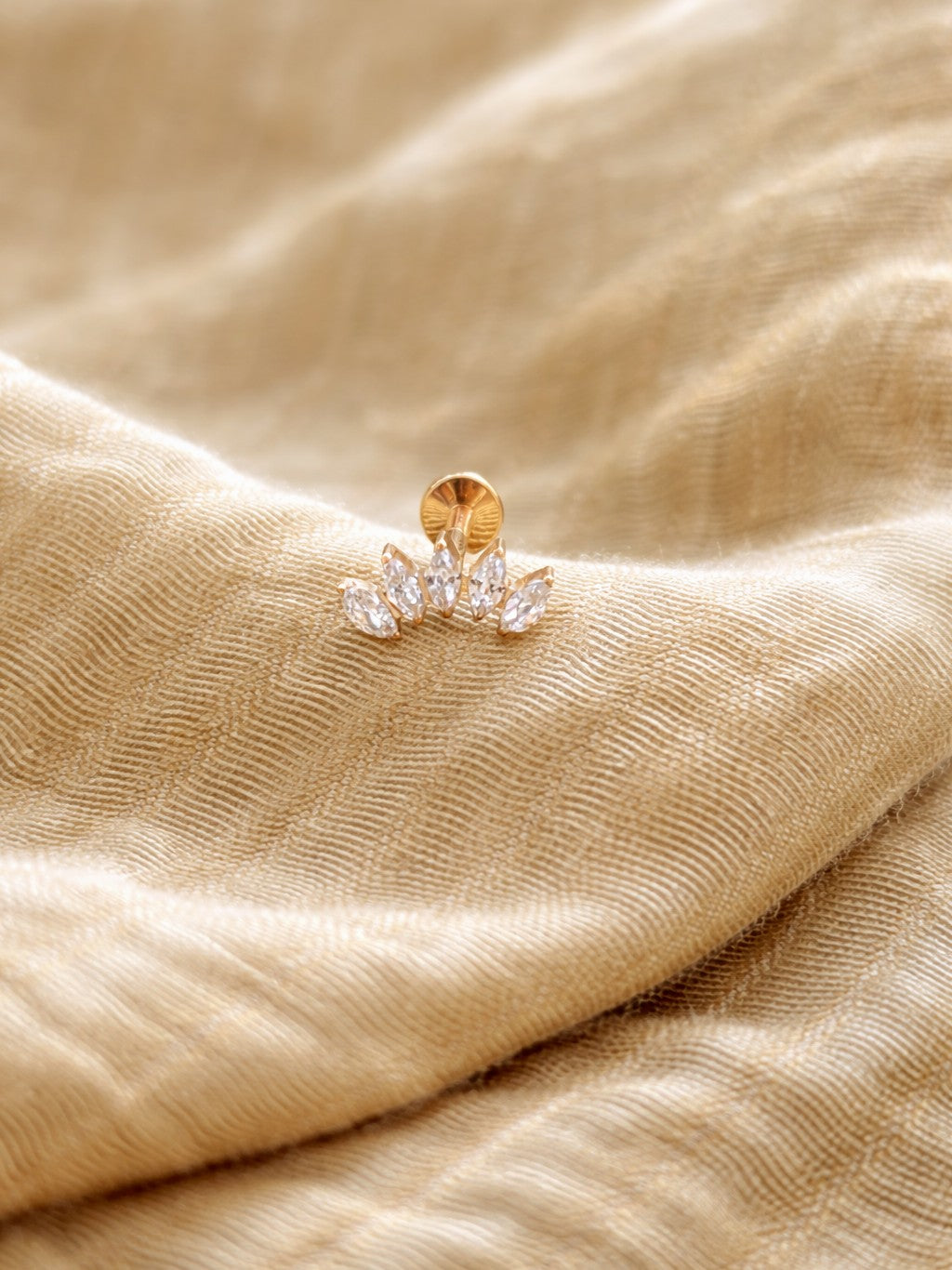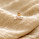 Gouden labret piercing met  marquise blaadjes – minimal statement ✨