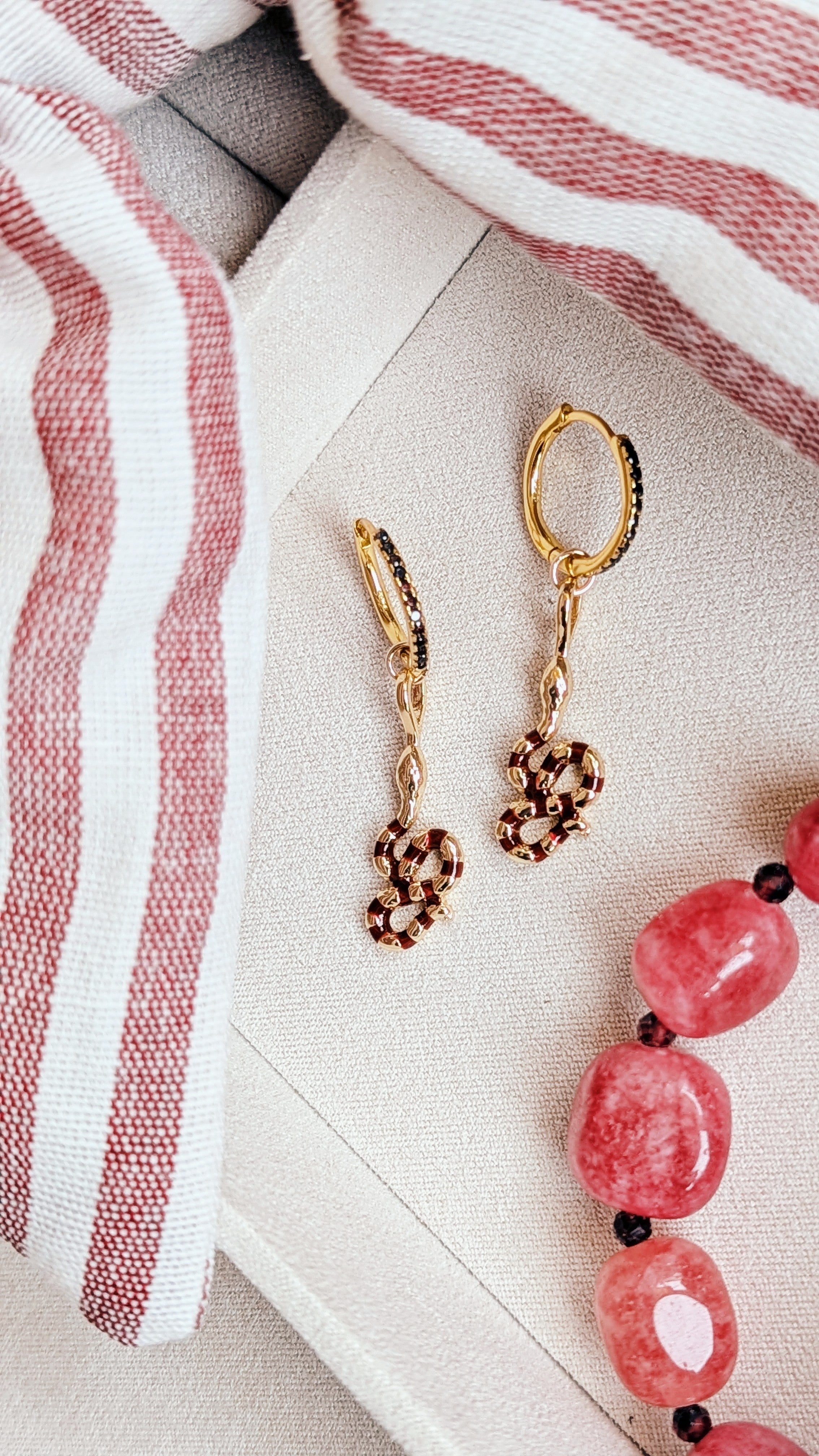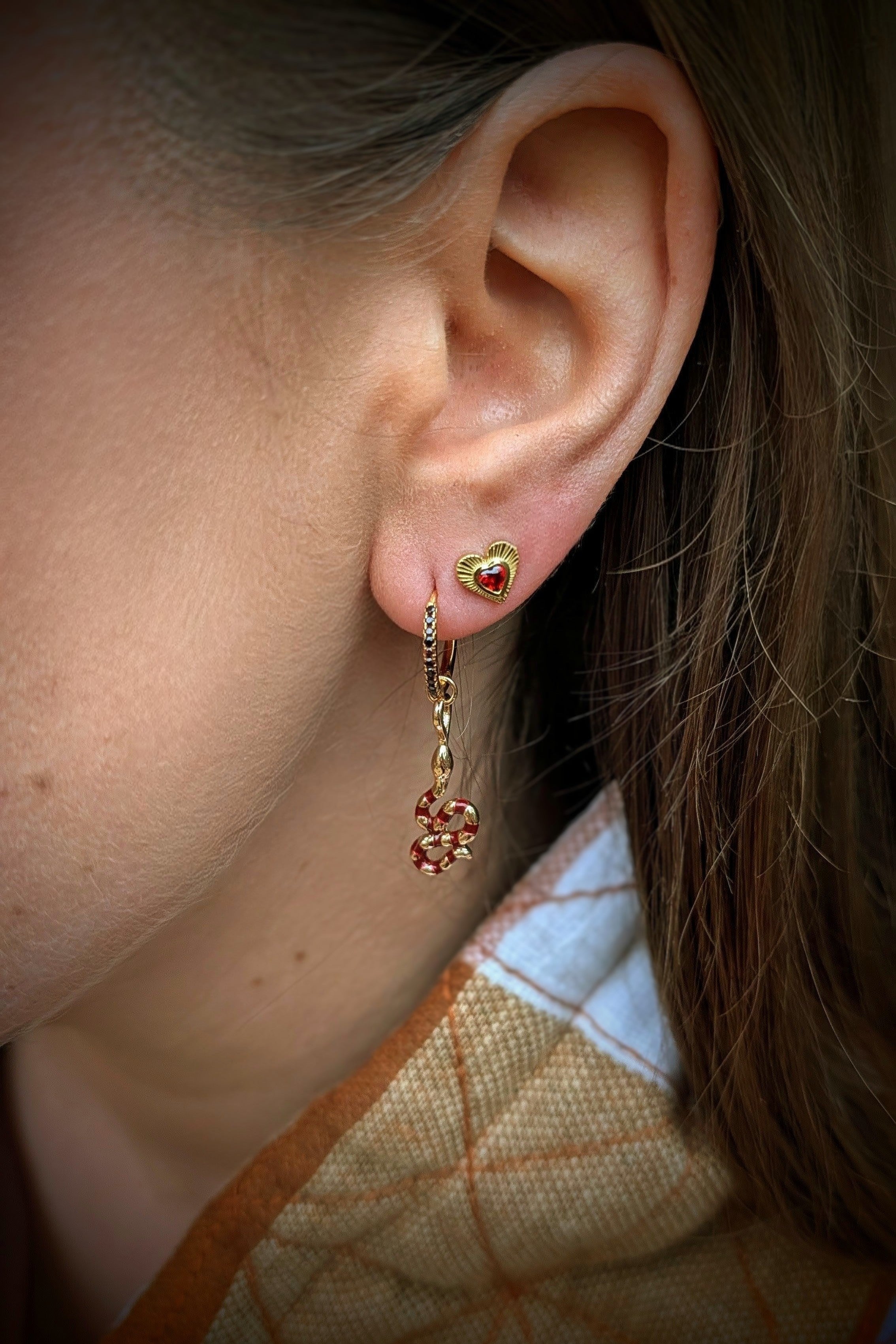 De Single Snake Hoop is een elegante gold hoop van 925 goldplated Silver met Bordeaux kleurig emaille. Subtiel, vrouwelijk en perfect voor dagelijks draagplezier.