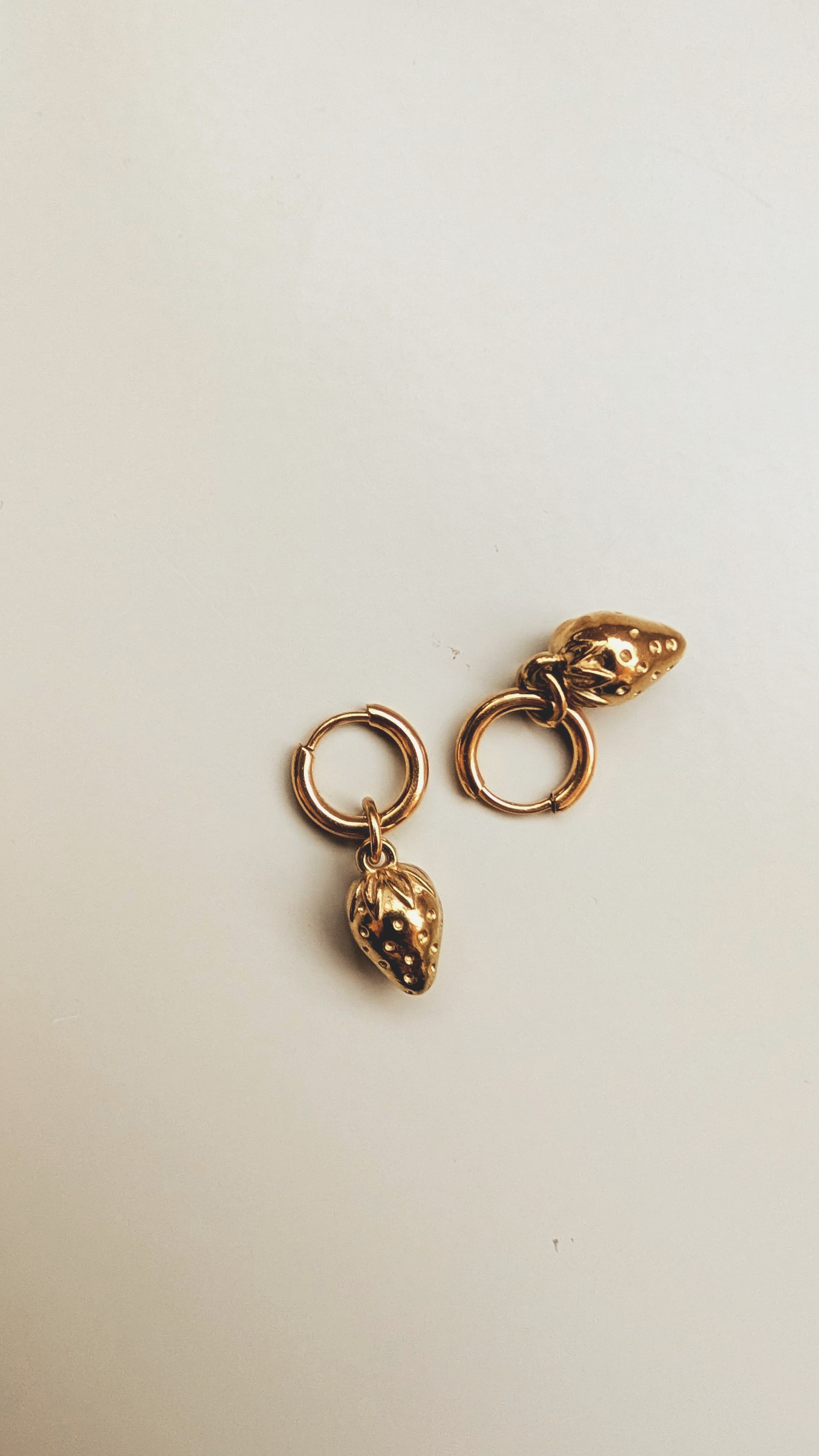 De Strawberry Hoop is een minimalistische gold hoop van stainless steel met een speels strawberry detail. Klein van formaat, groot in karakter en perfect voor elke dag.