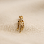 De piercing is vervaardigd uit hoogwaardig titanium met goldplated afwerking, wat zorgt voor een warme gouden glans en een duurzame kwaliteit. Dankzij het labretstaafje 1,2 mm dik met interne schroefdraad zit deze piercing comfortabel en veilig, ideaal voor dagelijks dragen in alle piercingplekjes van het oor (afhankelijk van jouw styling).