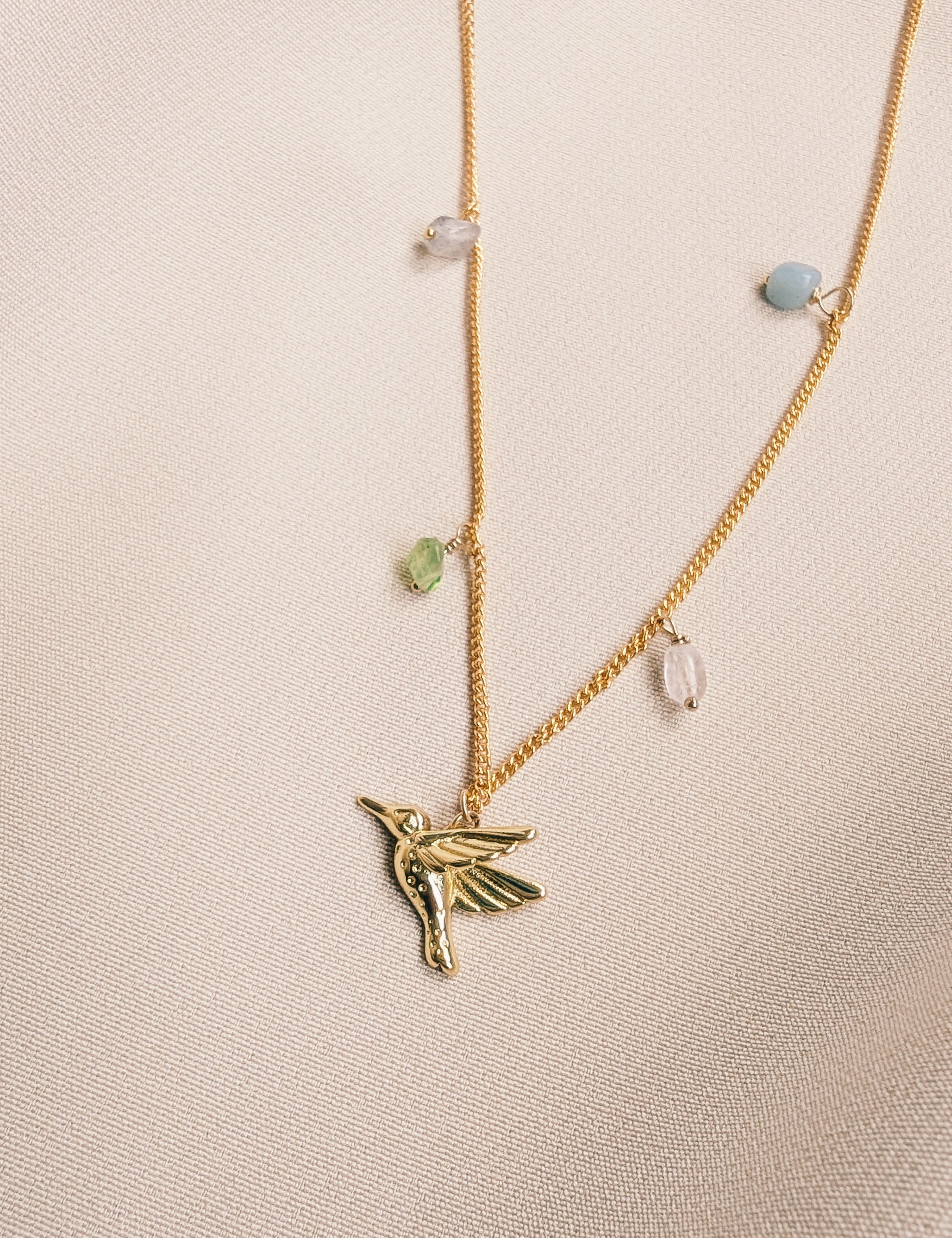 “Mijn dochter Lore gaat een jaar reizen, en ik wilde haar graag iets meegeven om ons gezinnetje bij haar te dragen. Ik koos voor het uitvliegende vogeltje en de geboortestenen van iedereen in ons gezin. Zo draagt ze ons dichtbij waar ze ook gaat.